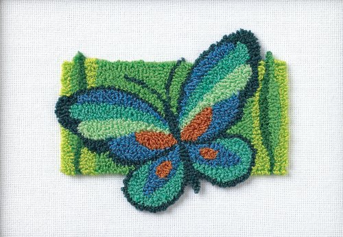 A fanciful butterfly is the focal point of this quick and easy punch needle design. Kit contains cotton thread, printed fabric, carbon paper, and easy instructions. Finished Size: 7-Inch by 5-Inch