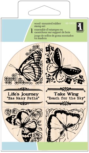 This wood stamp set features 4 butterfly corner stamps and 2 motivational statements to create beautiful cards, scrapbook pages and more. 6-Piece 4.13-inch by 6-inch.
