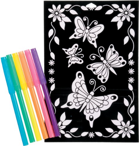 DARICE-Color-In Velvet Poster: 9x6in. These little posters are great for the younger children who seem to have a difficult time staying in the lines while coloring: the black velvet flocking is raised and causes such a high definition of contrast to the colors used that images appear to glow. Each post comes with six non-toxic markers. Conforms to ASTM D4236. WARNING: CHOKING HAZARD-Small parts. Not for children under 3 years. Imported