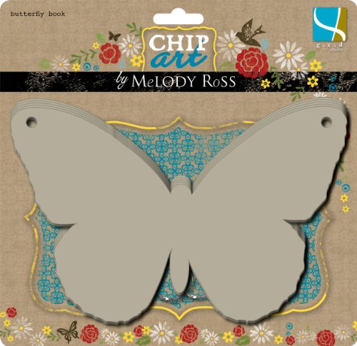 Chip Art By Melody Ross Chipboard. Plain chipboard pieces you can embellish with ink, paint and glitter and layer for dimensional effects on any paper craft project. Also great for embossing with Chip Art By Melody Ross Stamp Sets (sold separately). This package contains (1) 8" x 5" butterfly book with eight pages and (2) 1-3/4" binder rings.