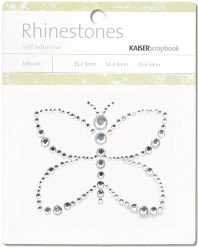 kaisercraft self adhesive rhinestones embellishments. it is time to bling your scrapbook pages with these lovely picture rhinestone embellishments. they are easy to use perfect for adding some sparkle and come in a variety of designs and colors. average size 2in. imported.