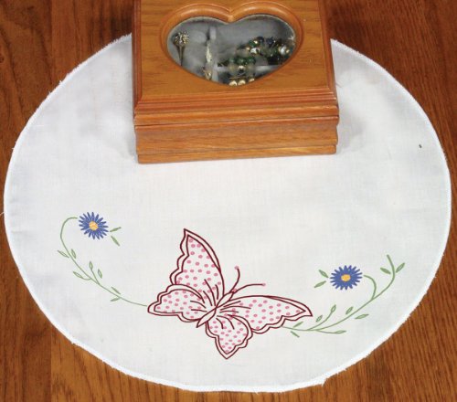 Stamped Doily 12" Round-Flower Butterfly Feature