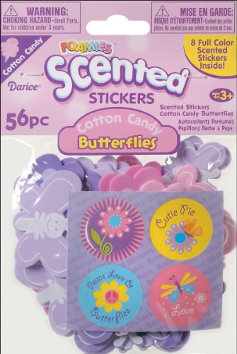 darice foamies scented stickers. these stickers are great for decorating any craft project each set features a different scent for even more fun number of stickers per package varies by design. recommended for ages 3 and up. warning choking hazard small parts. not for children under 3 years. imported.