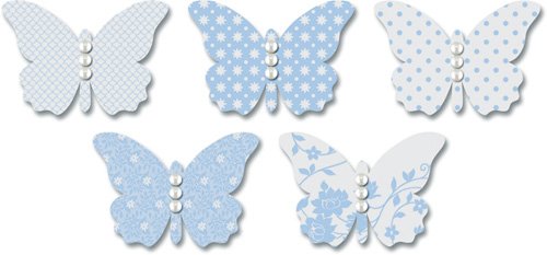 JENNI BOWLIN-Butterfly Embellishments. This package contains five heavy cardstock 1-1/4x1-3/4in butterflies cut from patterned cardstock and featuring gem accents. Each butterfly is pre-mounted on dimensional foam tape. Available in a variety of colors: each sold separately. Imported.