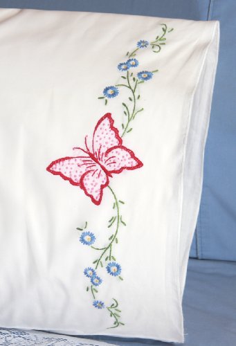 Stamped Perle Edge Pillowcase 30"X20" 2/Pkg-Red Butterfly Review