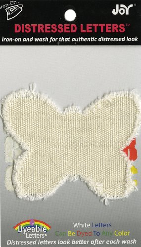 joy distressed butterfly. joy letter shop white distressed iron on letters emblems look better after each wash. for permanent fabric application follow ironing instructions. letters can be dyed to match any theme. size 2 3 4x2 inches. imported.