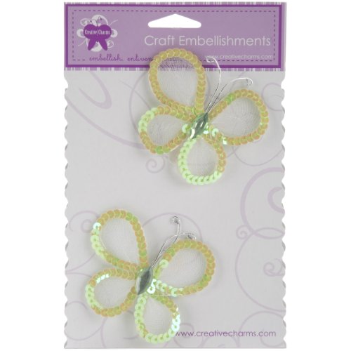 creative charms sequin butterflies. these dimensional embellishments are the perfect finishing touch to your scrapbook pages and cards. this package contains two sequined butterflies. each measures 2x2 1 2 inches. imported.