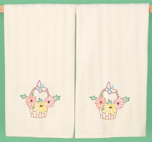 Stamped Embroidery. Perfect for the Kitchen and the Bathroom! These oversized 100% cotton hand towels are soft and comfortable for use on even your face. Available in white and cream (each sold separately) each color is available in a variety of designs pre-printed in wash-away ink. Hand or machine embroider, try painting or silk screening. This package contains (2) 20" x 28" towels, instructions and a complete materials list.