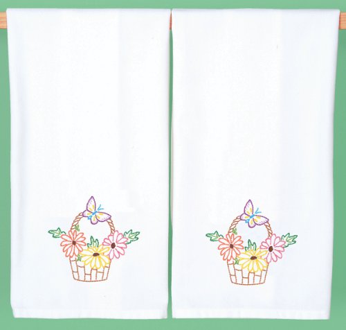 Stamped White Kitchen Towel 20x28 Pair: Basket & Butterfly Review