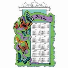 2012 Jeweled Calendar Kit. This wonderful kit contains everything you will need to complete this gorgeous jeweled calendar. This kit contains printed felt, cotton floss, wool yarn, color separated sequins and beads, needle, wooden dowel, finials, and instructions. Size: 24" x 16". Theme: Butterflies and Ribbon. Needle and beads imported. All other components made in USA.