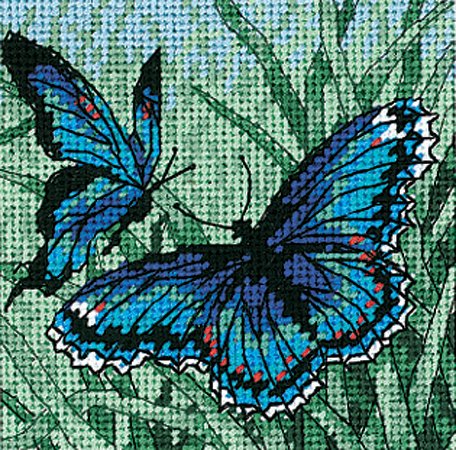 Butterfly Duo Dimensions Kit includes: Cotton embroidery thread design printed in full color on 12 mesh canvas needle and easy instructions. (Mat / Frame not included.)