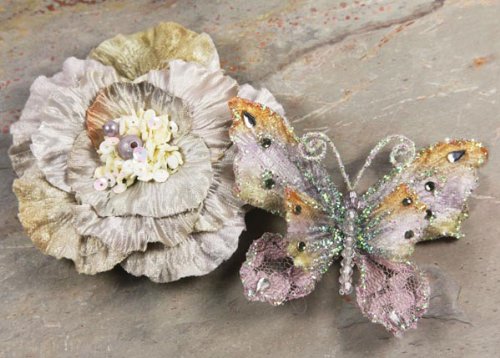 Beautiful, realistic looking fabric flowers and coordinating butterfly for added elegance to you scrapbook layouts, greeting cards, shadow boxes, home decor, and much more. This package contains 1 self-adhesive 3-1/2" fabric flower and a 2-1/2" x 3-1/2" butterfly each with accents such as glitter, pearls, glitter, wire and more. Available in a variety of color and style combinations (accents vary by design), each sold separately.