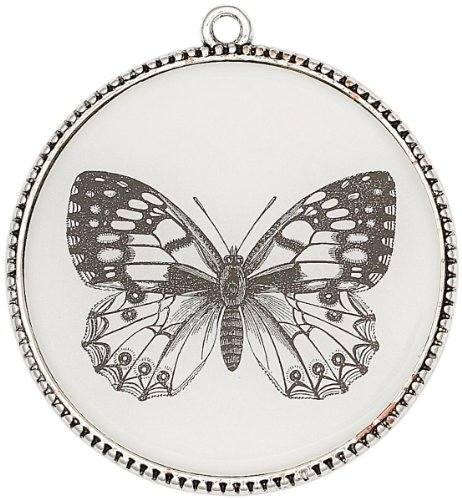 Blue Moon Bella Artiste Metal Pendant, 1/Pkg, Round/Butterfly, Antique Silver Review