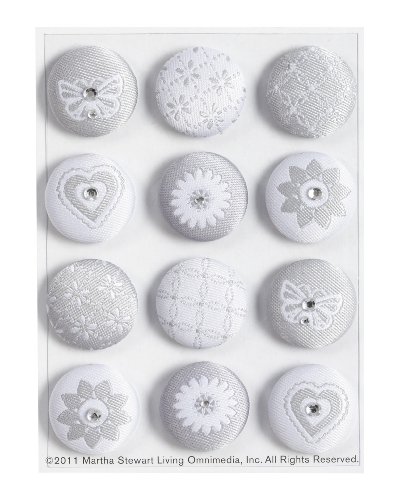 These Doily Lace fabric brads from Martha Stewart Crafts feature lacy patterns, butterflies, hearts, and flowers with rhinestone accents. Use on decorations, invitations, or even party outfits. Includes 12 pieces.